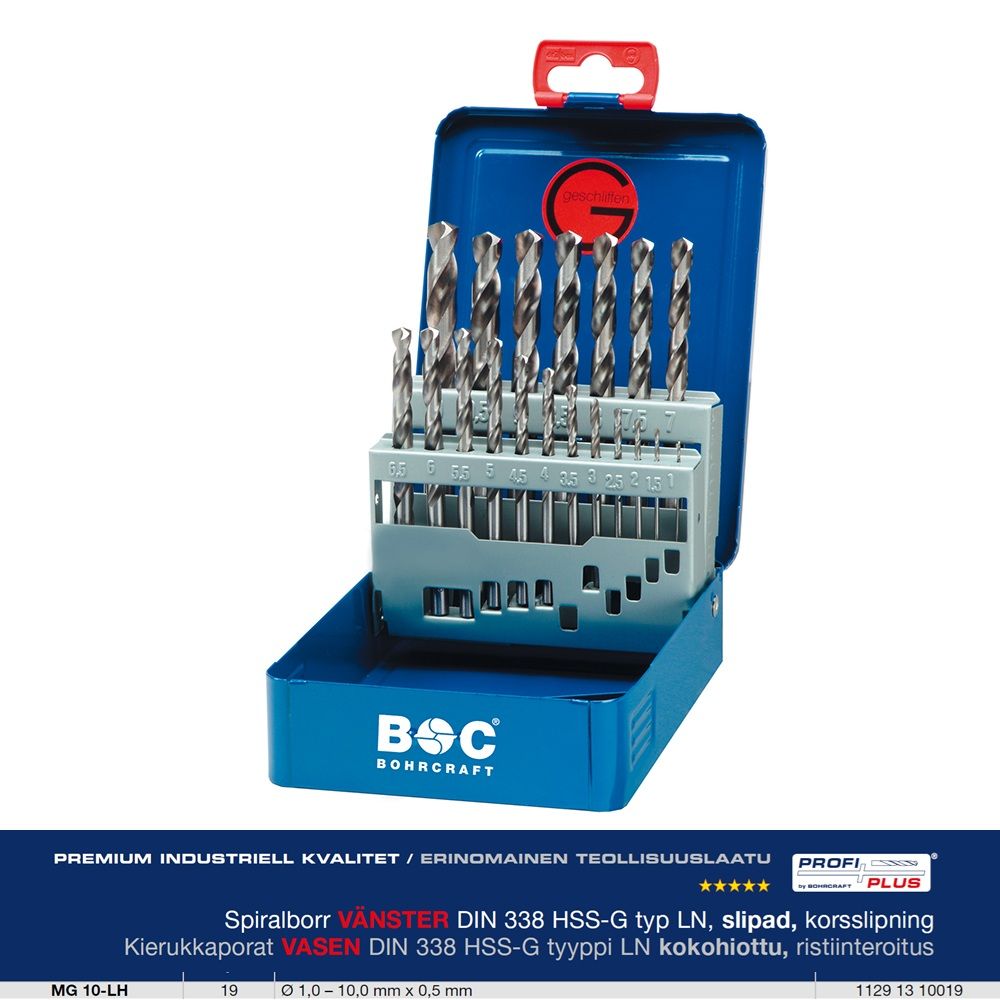 VASENKÄTINEN PORASARJA 1-10MMx0,5MM HSS-G 19-OS BOHRCRAFT MG10-LH P-PLUS LEFT HAND
